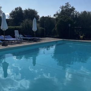 Nel grande giardino i bambini hanno ampio spazio per giocare, mentre la piscina è perfetta per il divertimento e il relax di adulti e bambini. La casa si trova in una posizione tranquilla, a circa 400 metri dalla strada provinciale, ma è comunque vicina al paese più vicino, raggiungibile in pochi minuti per fare la spesa o andare al ristorante.