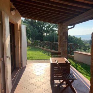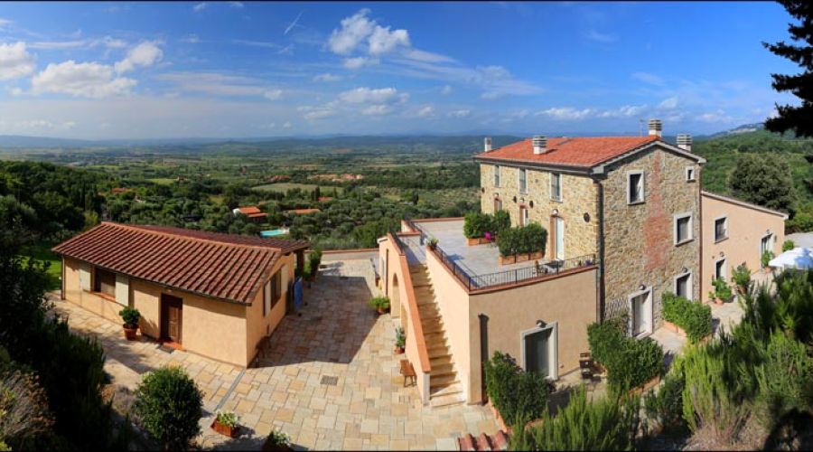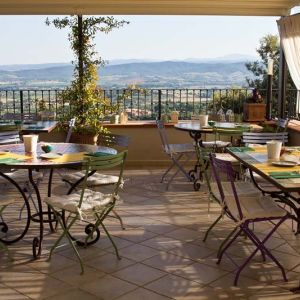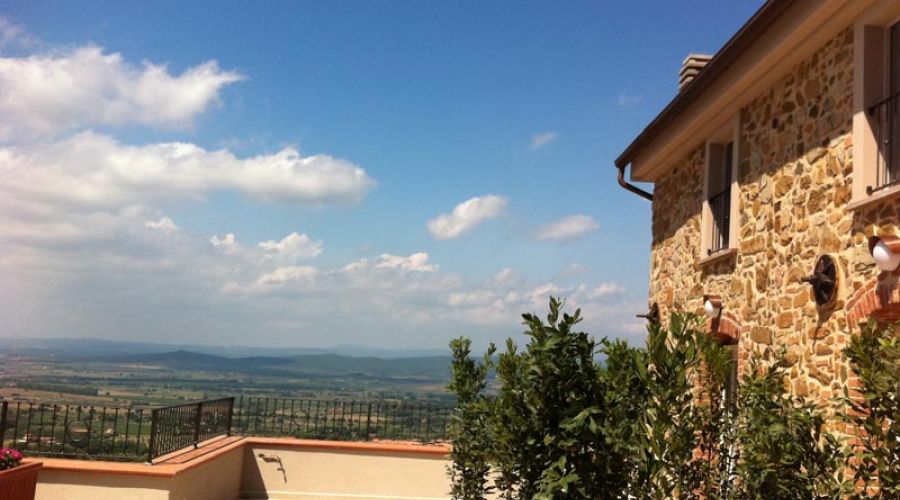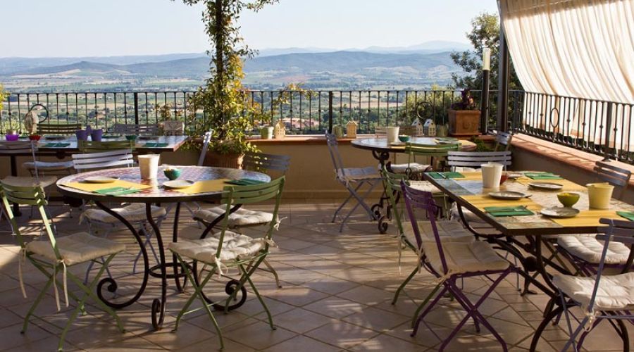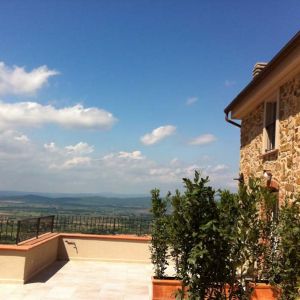 Dalla splendida terrazza si ammira una vista incantevole sulle colline circostanti, ideale per una colazione al sole o un aperitivo al tramonto.