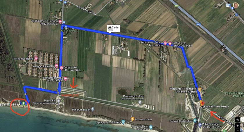 Der freie Hundestrand Mortelliccio befindet sich nur wenige Autominuten nördlich von Follonica, inmitten des Naturschutzgebietes Parco Costiero della Sterpaia. Sie fahren Richtung Piombino und biegen am Schild Torre Mozza/Carbonifera ab, am Kreisverkehr rechts und der Ausschilderung “Bagno Elia” folgen, Sie fahren direkt auf den kostenpflichtigen Parkplatz zu.